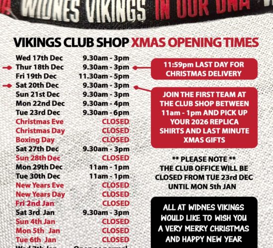 We can confirm the opening hours of the Vikings club shop over...