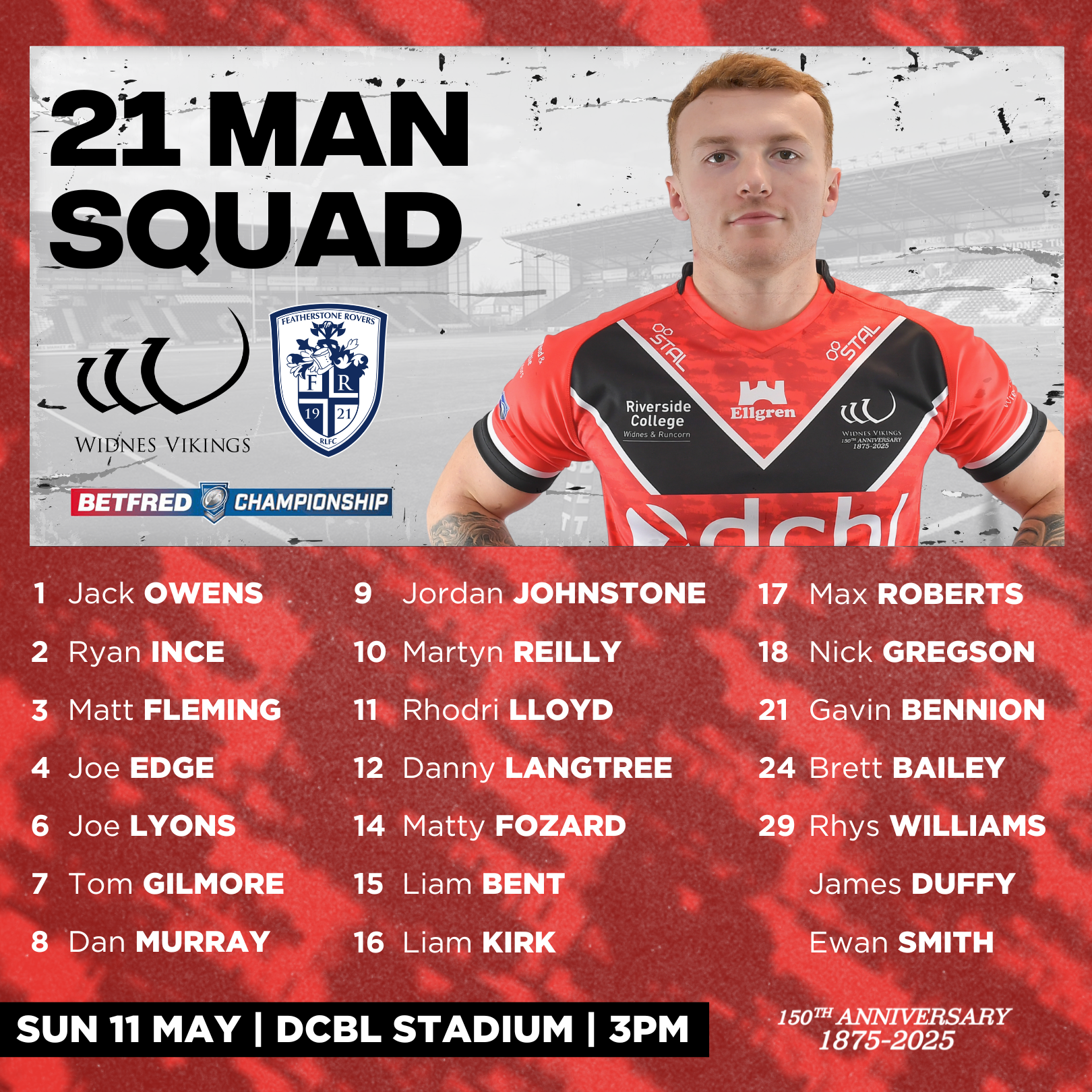 Allan Coleman has named his 21-man squad for Sunday’s clash with Featherstone Rovers at the DCBL Stadium. The match is scheduled to kick off at 3pm as the Vikings look to make it back-to-back wins. We welcome winger James Duffy and second row Ewan Smith on dual registration from Warrington Wolves. Both players join for...Read More