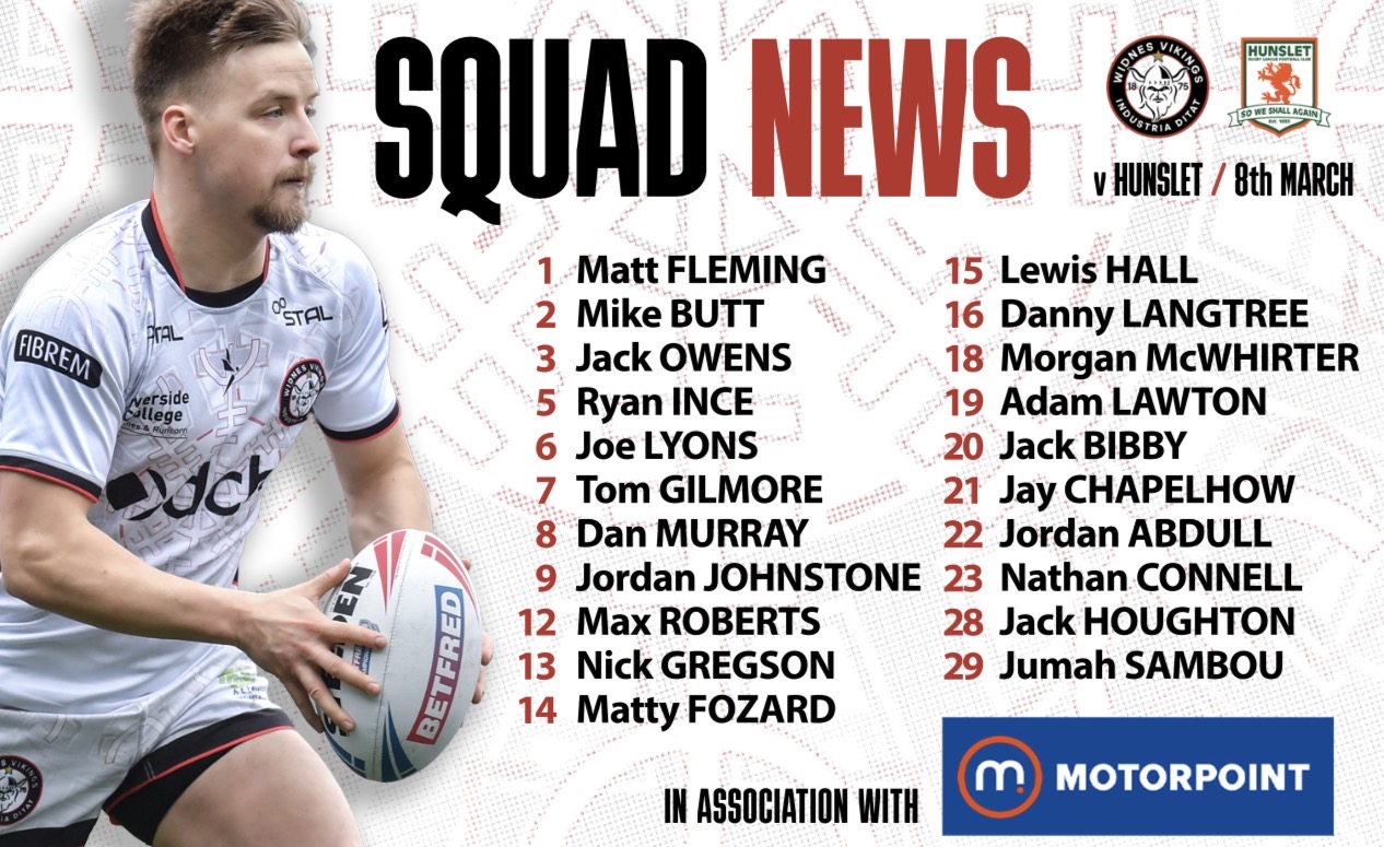 Allan Coleman has named his squad for the Vikings’ Betfred Championship fifth-round clash against Goole at the DCBL Stadium this Sunday (3pm). The Vikings name an unchanged squad from Friday’s 18-12 victory over Oldham. Our official 2026 squad news partner is Motorpoint Widnes! Tickets for the fixture are available HERE. Vikings Squad v Goole Vikings 1 MATT FLEMING...Read More