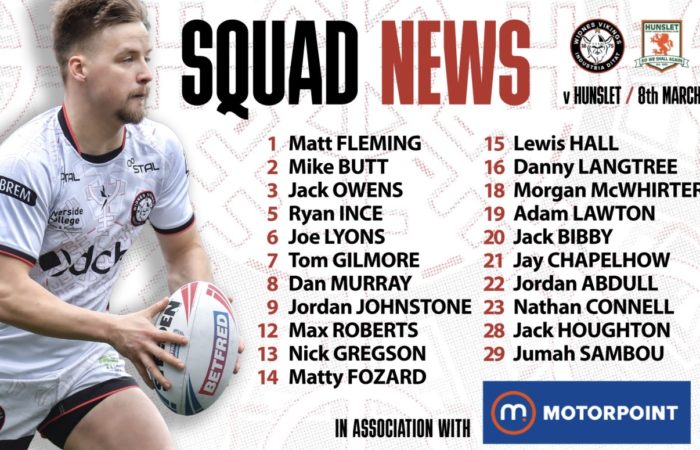 Allan Coleman has named his squad for the Vikings’ Betfred Championship sixth-round clash against Hunslet at the DCBL Stadium this Sunday (3pm). The Vikings make one change from last time...Read More