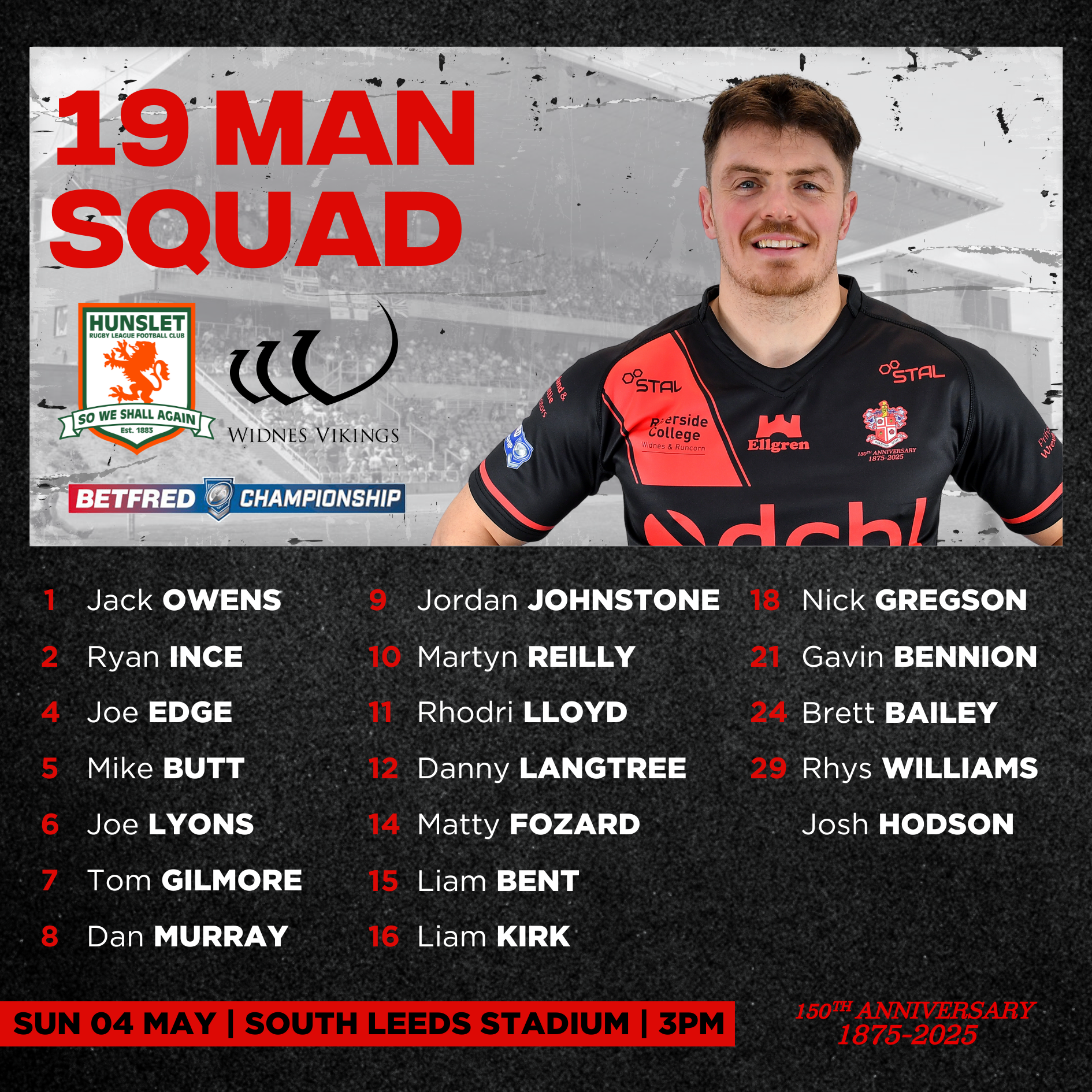Allan Coleman has again named a 19-man squad for Sunday’s clash with Hunslet at the South Leeds Stadium.